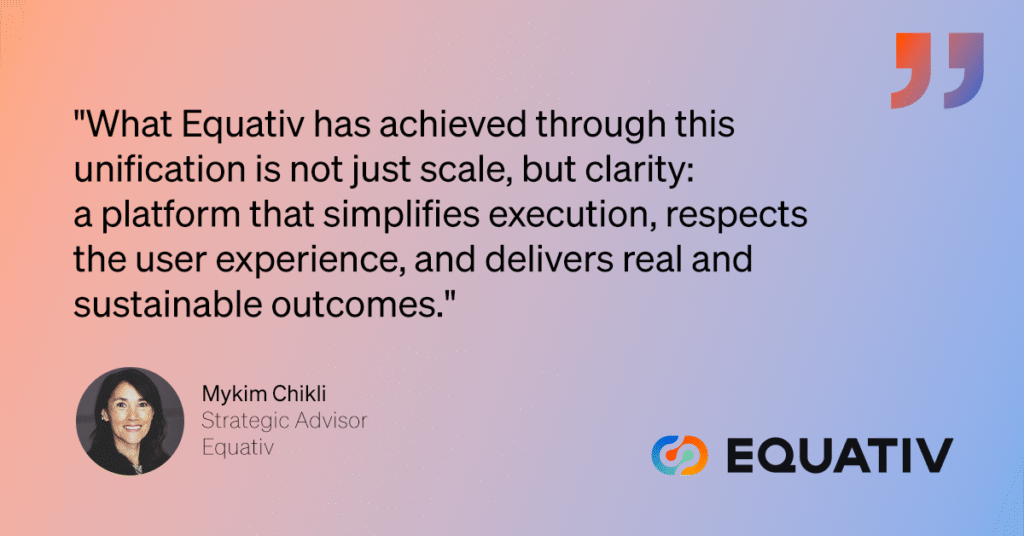 בהיותה היועצת האסטרטגית של Equativ בשנתיים האחרונות, מיקים צ'יקלי (Mykim Chikli), לשעבר מנכ"לית קבוצת פובליסיס באזורי EMEA ובאסיה ומנכ"ל Weborama בצרפת, העידה: "כמי שעסקה עשרות שנים בצד הסוכנות בעבודה עם מותגים גלובליים, ראיתי ממקור ראשון כיצד התעשייה התפתחה – ועד כמה היא הפכה מפוצלת ומורכבת. מה ש-Equativ השיגה באמצעות האיחוד הזה הוא לא רק קנה מידה אלא בהירות: פלטפורמה שמפשטת את הביצוע, מכבדת את חווית המשתמש ומספקת תוצאות אמיתיות וברות קיימא. זה בדיוק סוג הסוכנויות השותפות והמפרסמים שצריכים בשוק של היום".