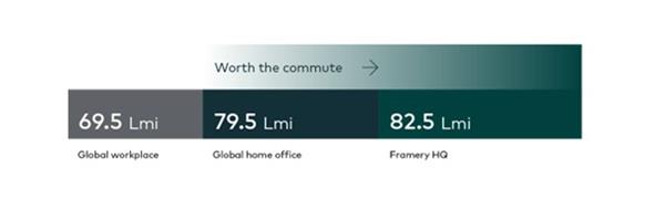 Leesman, המובילה העולמית במחקר עצמאי במקום העבודה, כימתה בדיוק מה הופך את הנסיעה לעבודה ל"כדאית". באמצעות הערכה עצמאית של חוויית העבודה, ליסמן לוכדת את רגשות העובדים לגבי מידת היעילות של סביבות העבודה שלהם בתמיכה בהם, ומשווה תוצאות אלו למדד ליסמן, מסד נתונים עולמי של למעלה מ-1.5 מיליון תשובות עובדים. ציון חוויית העבודה הממוצע העולמי (Lmi) הוא 69.5, בעוד שציון הייחוס העולמי לחוויית עבודה מהבית (H-Lmi) הוא 79.5. מטה Framery בטמפרה קיבל ציון Lmi של 82.5, מה שמציב אותו באליטה העולמית של מקומות עבודה.