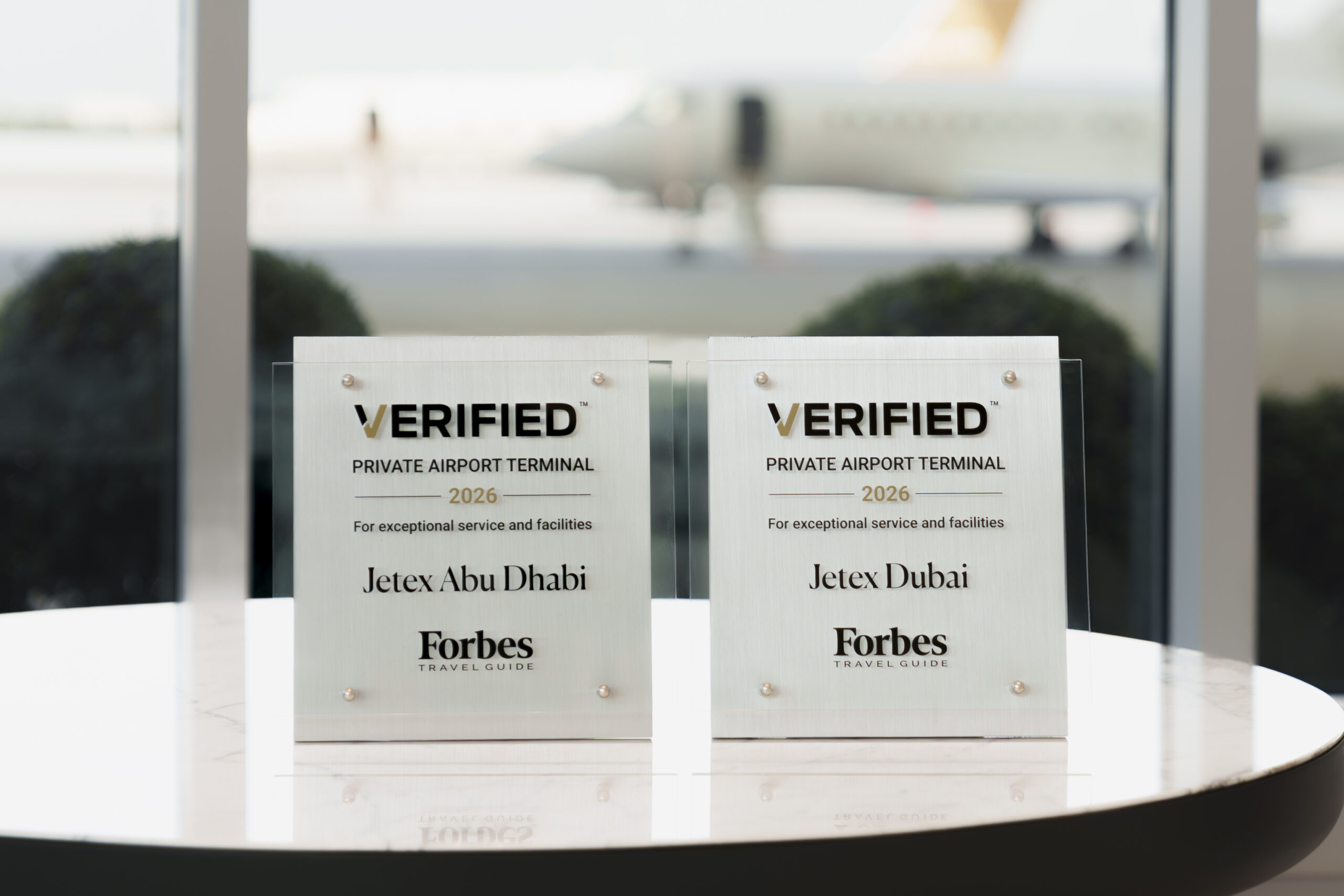 Jetex, a global leader in private aviation, is proud to announce that its flagship private terminals in Dubai and Abu Dhabi have become the first in the world to receive the VERIFIED™ badge, a prestigious honor from Forbes Travel Guide.